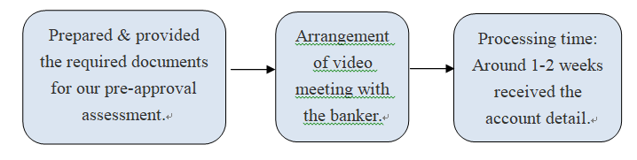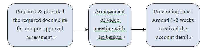 - Our banking specialists will assist in matching suitable banks with clients to begin the application and also assist clients in fulfilling the ever-changing due diligence policy by banks. This can be saving client’s time and money and more efficiency.